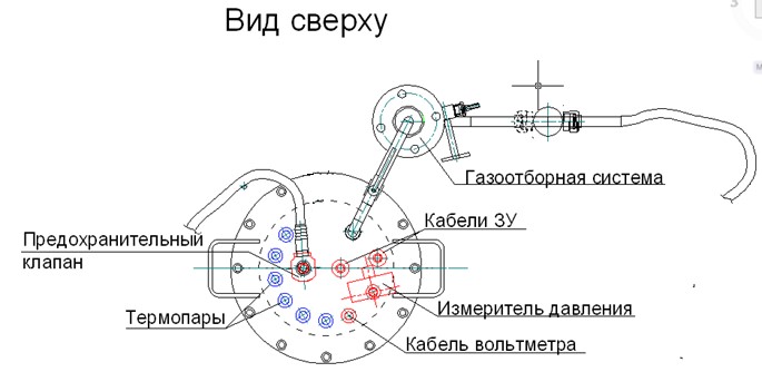 Испытательная камера представляет собой полый металлический цилиндр с крышкой, на которой размещены технологические отверстия и вспомогательное оборудование (рисунок 1).