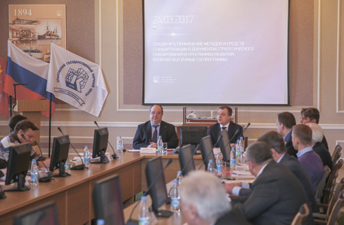 The workshop session for expert group of the VPK (Military-Industrial Commission of the Russian Federation) Board on quality insurance and reliability increase for weapons, military and specialized technology under the chairmanship of Anton P. Shalaev, Deputy Head of the Federal Agency on Technical Regulating and Metrology, was held on March 24, 2017 at Krylov State Research Centre, the leading organization for standardization of defense production in shipbuilding.