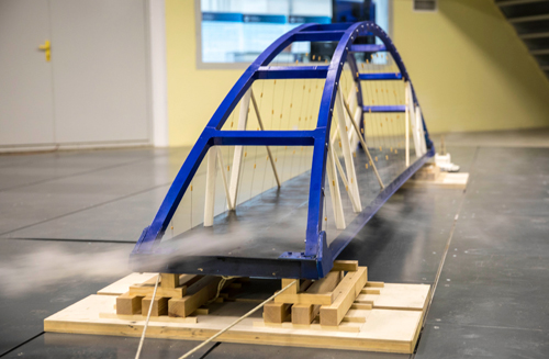 Tests aimed to determine the wind load were performed taking into consideration all possible wind directions and speeds. For this purpose, the arch model was rotated by 360 degrees using the turntable inside the landscape wind tunnel. The outcome of this test was of great importance. Navigation spans for the Crimea Bridge can be transported only at wind speed less than 10 meters per second. The arrangement and number of tugs may vary. There are at least three variants of tugs arrangement, for example: one tug with towing bridle at the fore end and two tugs at the aft end. Whereas the resistance and aerodynamic loads obtained for the railway arch are greater, the larger and more powerful tugs are required for its transportation.