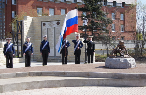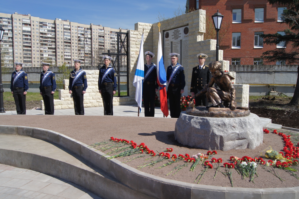 Roman A. Matantsev, an engineer of the Krylov Centre, who won the competition for the best monument design organized in 2013, has said that many war monuments focus on the death leaving by the wayside the core issue of Life, i.e. the life of coming generations for whom this feat was performed and who know about the war from the word of mouth and history books. For this reason the central character of the monument is a child — a boy dressed up as a sailor playing with toy ships. Behind the boy there is a part of damaged wall bearing the names of Krylov’s employees who lost their lives during the Great Patriotic War.