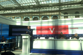 Mr. Vyacheslav Struev, Deputy Director General of the KSRC, took part in panel talk Construction, reconstruction and safe operation of sea and river ports and waterworks and presented his report Environmental safety challenges for water areas, islands and coasts in the Arctic.