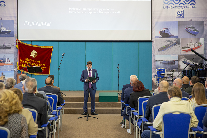 Генеральный директор ФГУП «Крыловский государственный научный центр» Дмитрий Олегович Новиков открыл праздничное мероприятие вступительной речью, в которой отметил огромный вклад ЦКБ «Балтсудопроект» в развитие судостроительной отрасли страны, как одной из ведущих конструкторских организаций, способной успешно выполнять любую поставленную перед ним задачу в области проектирования судов и объектов морской техники.