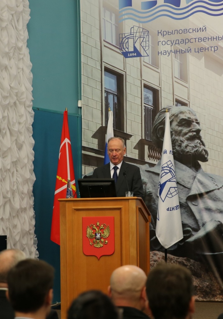 В ходе визита по вопросу исполнения Указа Президента Российской Федерации от 2 декабря 2025 года №881 «О создании Национального исследовательского центра судостроения имени академика А.Н. Крылова» Н.П. Патрушев выступил с обращением к крыловцам, в котором осветил цели и задачи образования «Национального исследовательского центра судостроения имени академика А.Н. Крылова», они позволят Крыловскому государственному научному центру выйти на новейший уровень в деле объединения ведущих научных кадров, материальных ресурсов и ключевых компетенций для решения амбициозных задач в сфере судостроения, морской техники и освоения ресурсов Мирового океана.