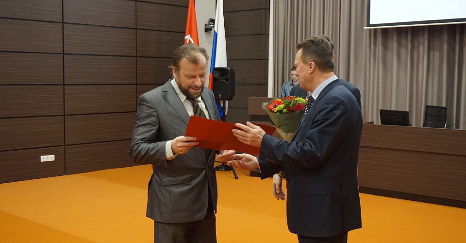 За большой личный вклад в развитие научного потенциала отечественного судостроения почетная грамота председателя Заксобрания Санкт-Петербурга была вручена ведущему научному сотруднику отделения судовой и промышленной акустики А.Г. Таубину, работающему в Крыловском центре с 1970 года.